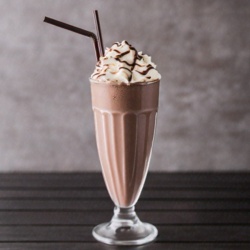 Bebida feita a base de sorvete batido com leite e adornado de calda de frutas.