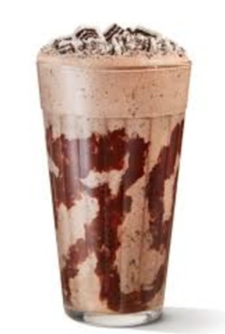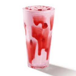 Bebida feita a base de sorvete batido com leite e adornado com calda de frutas.